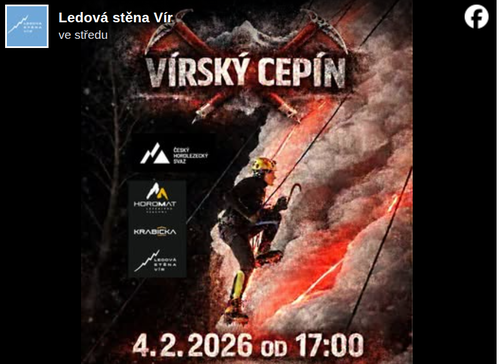 The Vírský cepín speed ice climbing competition will be held on the ice wall in Vír in the Žďár region, East Czechia, this Wednesday, February 4, 2026. For more information, see the ČHS social media and ice wall information below. ... full story